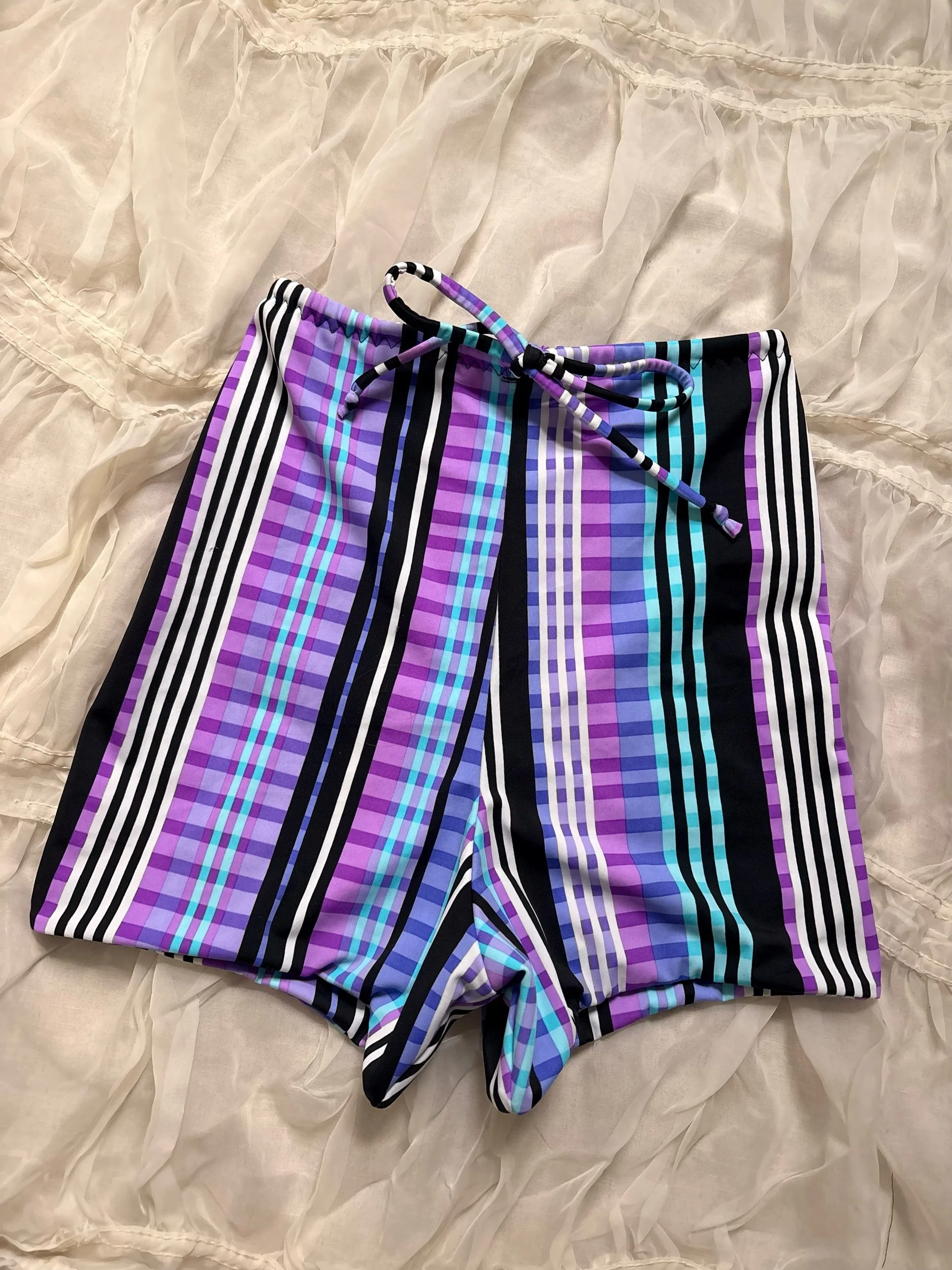 Ready to ship › Surf shorts S/M Image 1 of 2 Image 2 of 2 Surf shorts S/M CA$65.00 High waisted surf shorts in disco stripes. Size S/M Add To Cart Added! High waisted surf shorts in disco stripes. Size S/M